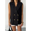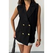 Modasize Gold Düğmeli Keten Yelek - Siyah Siyah