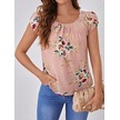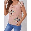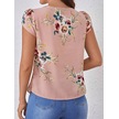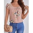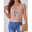 Modasize Kadın Kısa Kollu Bisiklet Yaka Çiçek Baskılı Süprem Bluz Pembe
