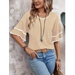 Modasize Kadın Kısa Kollu V Yakalı Viskon Bluz Bej