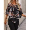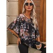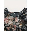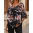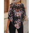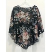 Modasize Kadın Kısa Kollu Yuvarlak Yaka Çiçek Baskılı Asimetrik Kesim Şifon Bluz Siyah