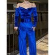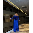 Modasize Kadın Modanna Yaka Zincir Askı Detay Kemer Dahil Kadife Kumaş Tulum Mavi