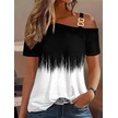 Modasize Kadın Tek Omuzdan Açık Askı Detaylı Desenli Süprem Bluz Altın