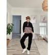 Modasize Kadın Uzun Kollu Leopar Detay Sweat Ve Yanı Leopar Şerit Detay Pantolon Ikili Takım Siyah