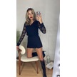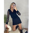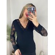 Modasize Kadın Uzun Kollu V Yakalı Dantel Detaylı Viskon Bluz Siyah