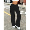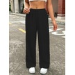 Modasize Kadın Yüksek Bel Bol Paça Bürümcük Pantolon Siyah