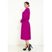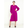 Modatalika Kadın Pile Detaylı Kemerli Gömlek Yaka Şık Uzun Kolu Midi Elbise Fuşya