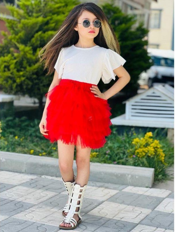 Modavals Kız Çocuk Tütü Etekli Kaşkorse Bluzlu Kombin - Kırmızı