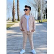 Modavals Kol Katlamalı Keten Gömlek & Beli Lastikli Keten Pantolon & Pamuklu Tshırt & Zincir Aksesuar 4lü Keten Erkek Çocuk Takım Bej