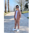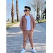 Modavals Kol Katlamalı Keten Gömlek & Beli Lastikli Keten Pantolon & Pamuklu Tshırt & Zincir Aksesuar 4lü Keten Erkek Çocuk Takım Kahverengi