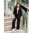 Modavals Kol Katlamalı Keten Gömlek Cepli Keten Alt & Suprem Askılı Badi 3lü Kız Çocuk Takım Siyah