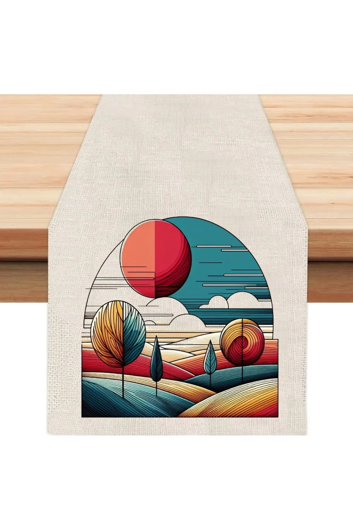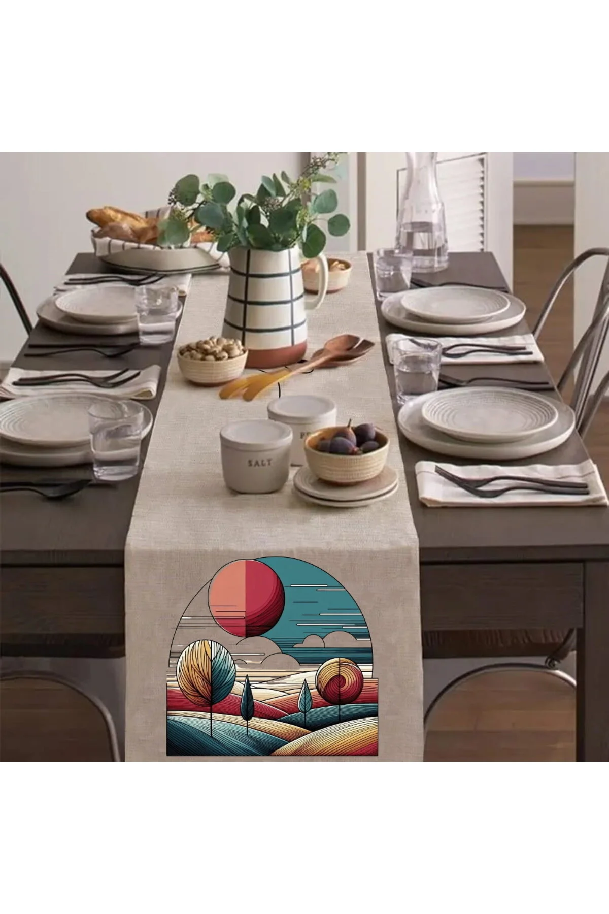 Modern Çizgi Manzara Runner, Runer, Masa Örtüsü, Sofranıza Zarafet Katın Runner, Masa Örtüsü Çok Renkli