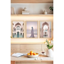 Modern İslami Mimari Ve Huzur Temalı 3 Lü Tablo Seti Çerçeve Görünümlü Crvs1210 30 X 40