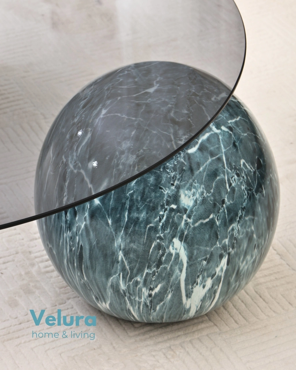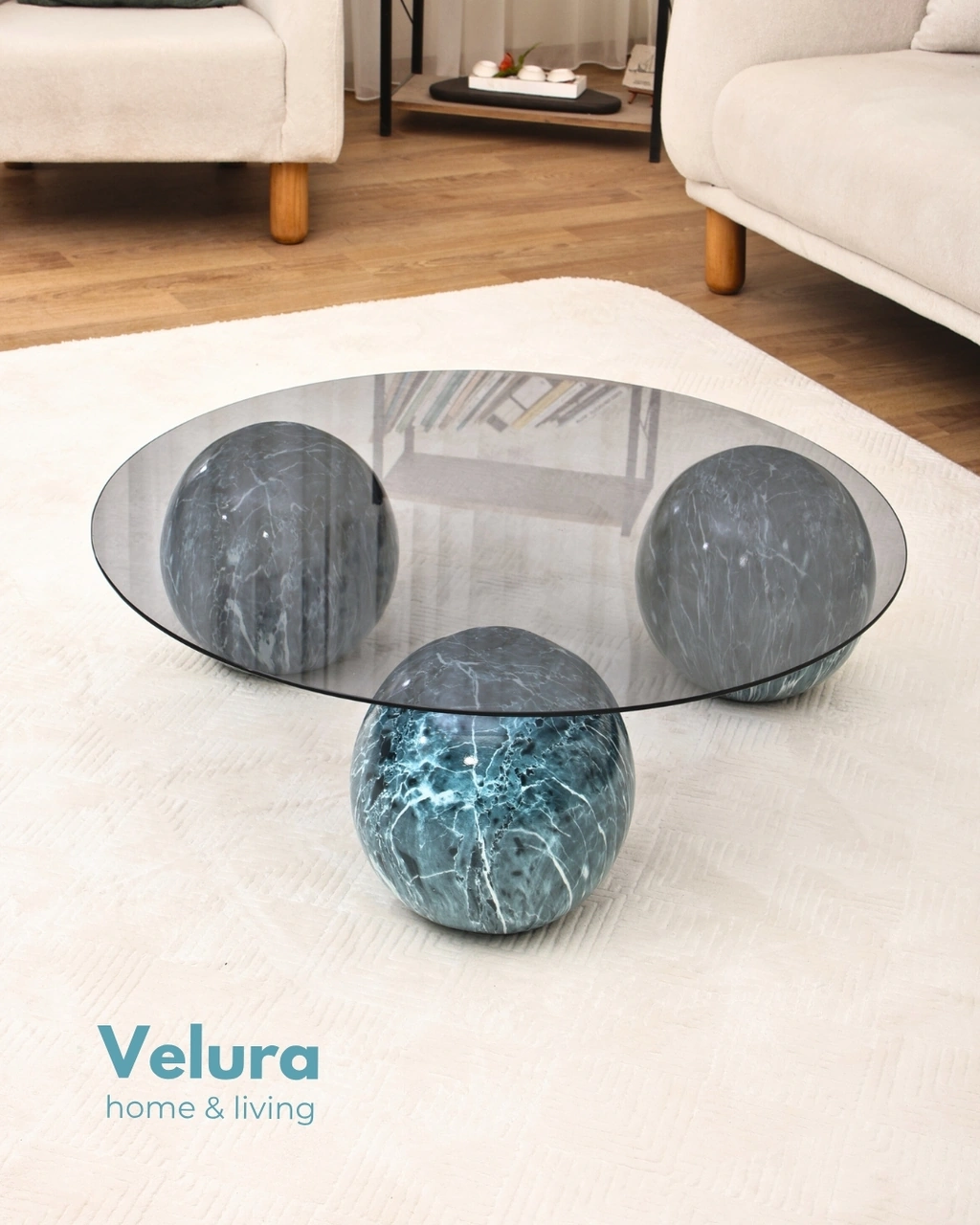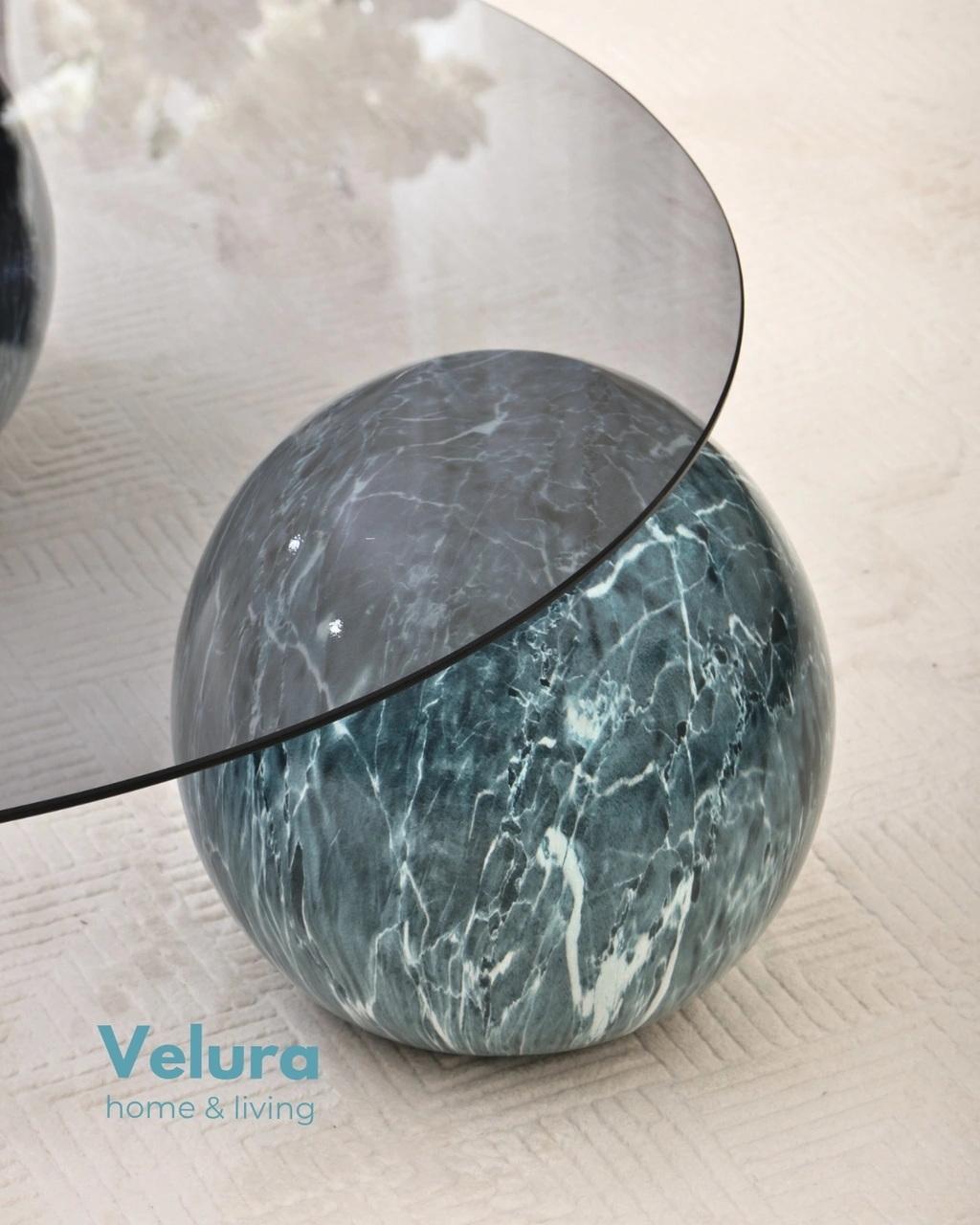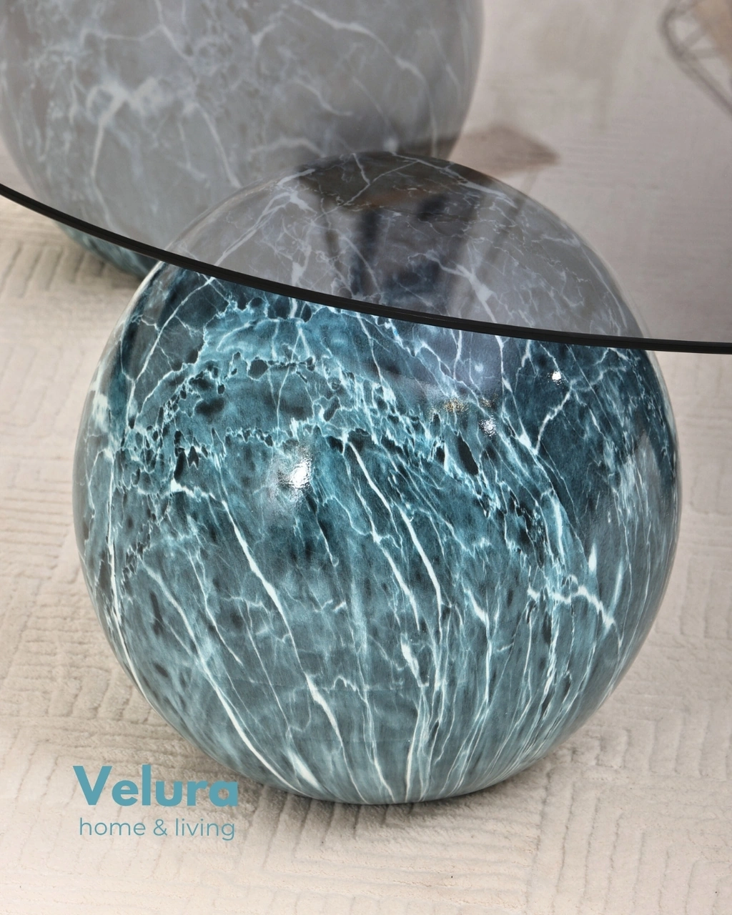 Modern Orta Sehpa & Küre Sehpa & Top Sehpa & Füme Yuvarlak Cam & Ocean Mavi
