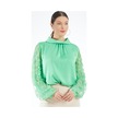 Modern Ve Şık Kadın Bluz - Transparan Taş İşlemeli Uzun Kol - Özel Gün Ve Davetler İçin Bluz Koyu Yeşil