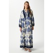 Modest Kadın Carena %100 Viskon Mavi Maksi Boy Yazlık Elbise Mavilacivertkrem Çok Renkli