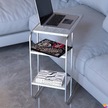Modilayn C Yan Sehpa Dar Boy Tekerlekli Çalışma, Atıştırmalık, Yemek, Laptop Sehpası Beyaz Çizgili Beyaz