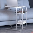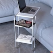 Modilayn C Yan Sehpa Dar Boy Tekerlekli Çalışma, Atıştırmalık, Yemek, Laptop Sehpası Beyaz Desenli Beyaz