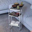 Modilayn C Yan Sehpa Dar Boy Tekerlekli Çalışma, Atıştırmalık, Yemek, Laptop Sehpası Siyah Desenli Siyah