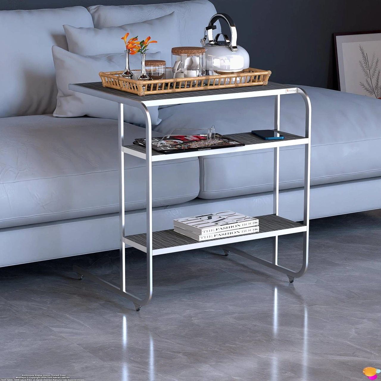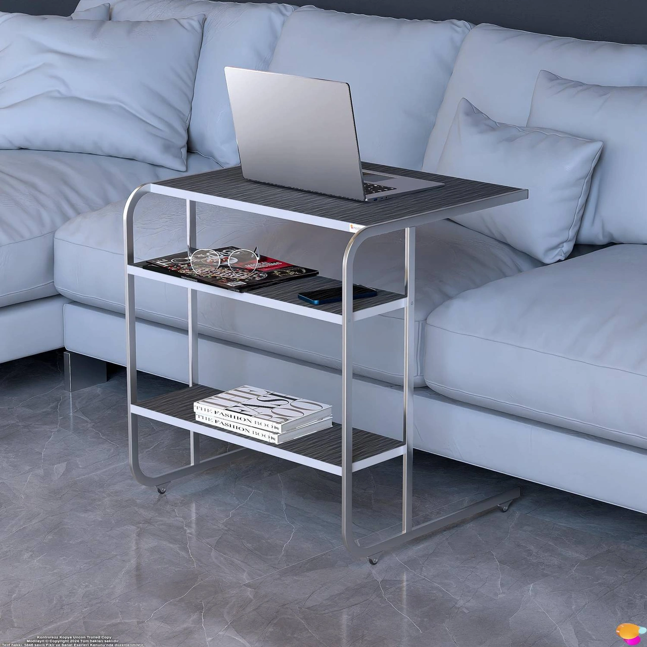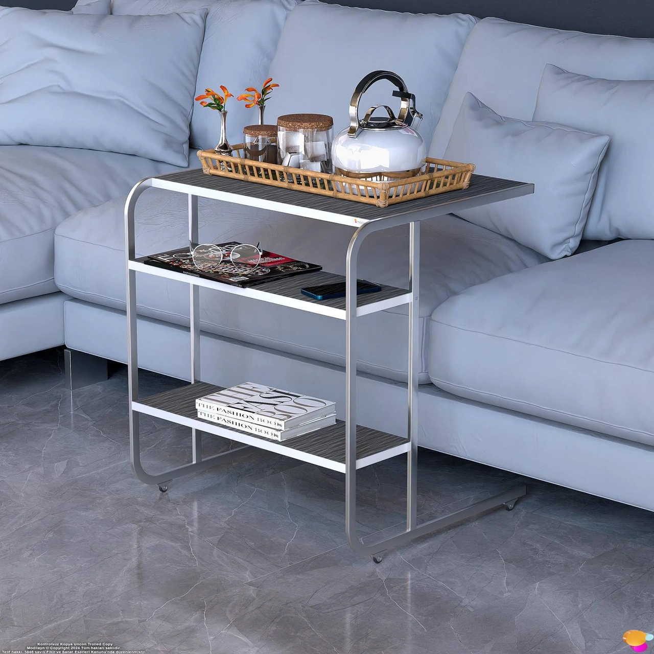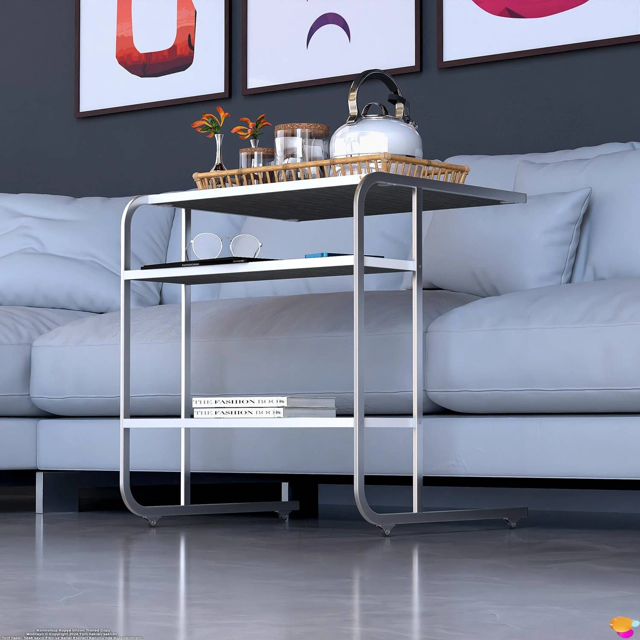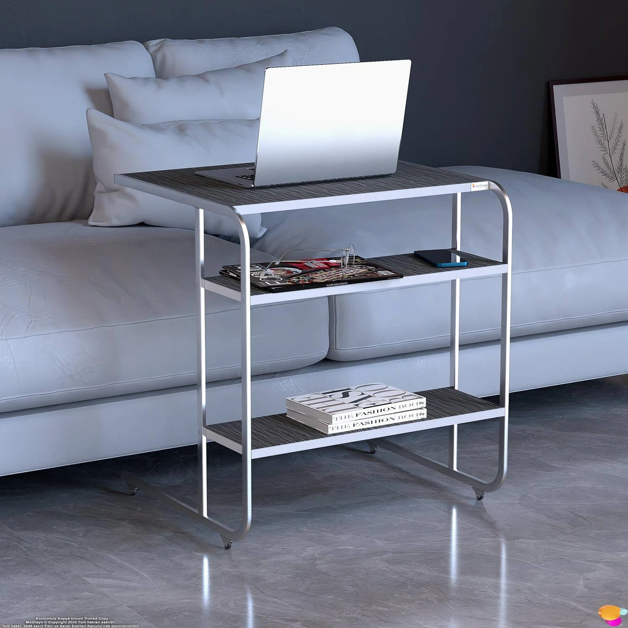 Modilayn C Yan Sehpa Geniş Boy Tekerlekli Çalışma, Atıştırmalık, Yemek, Laptop Sehpası Siyah Çizgili Siyah
