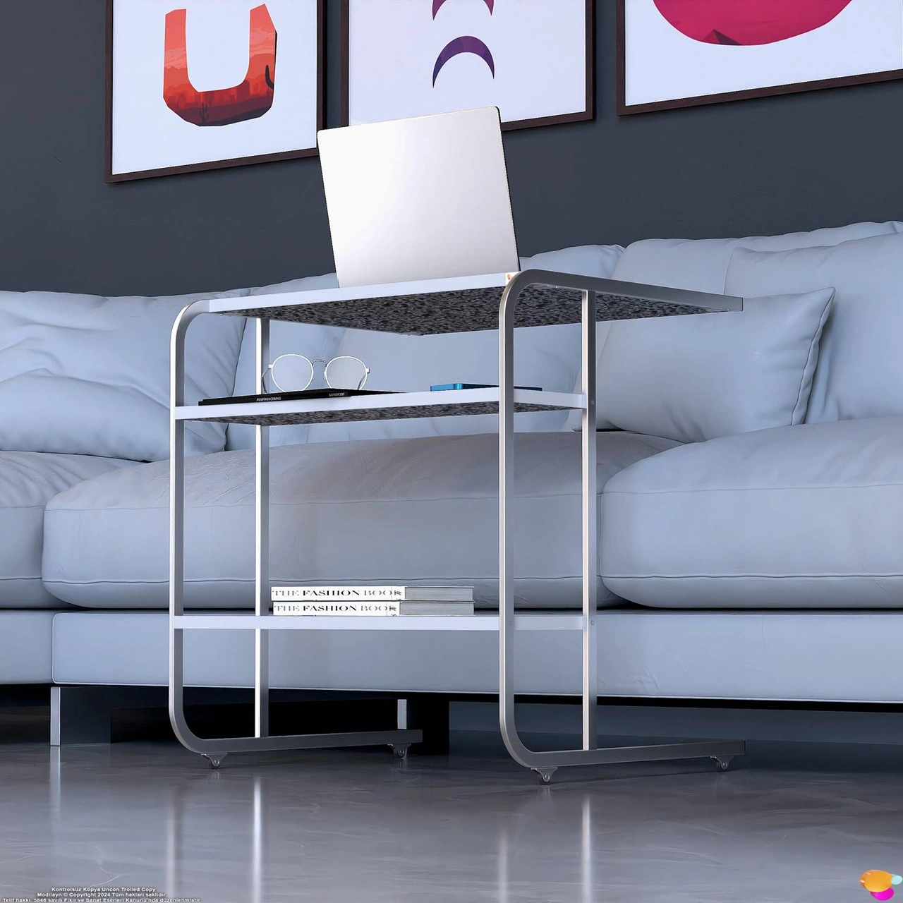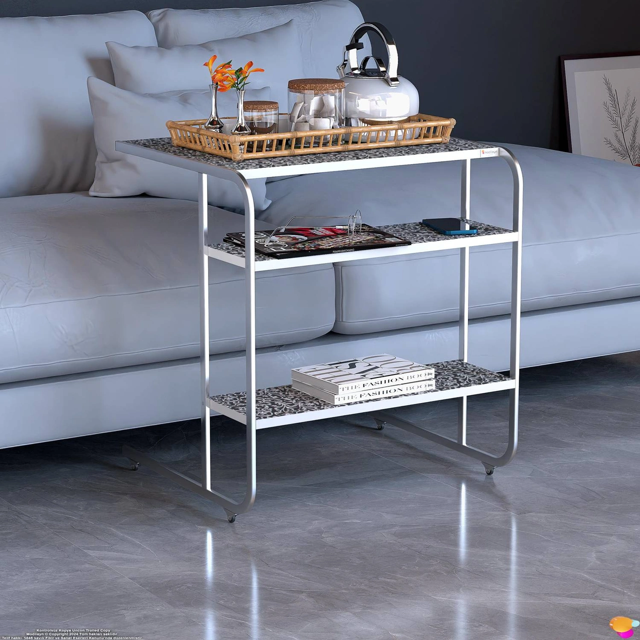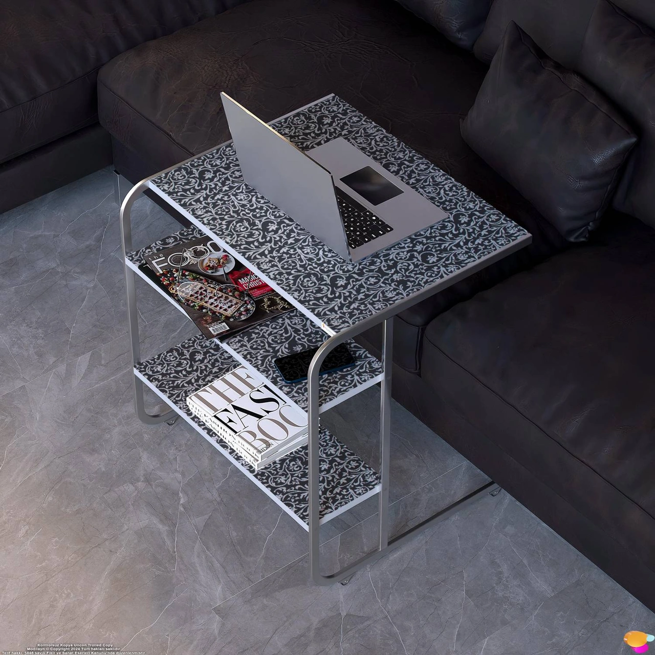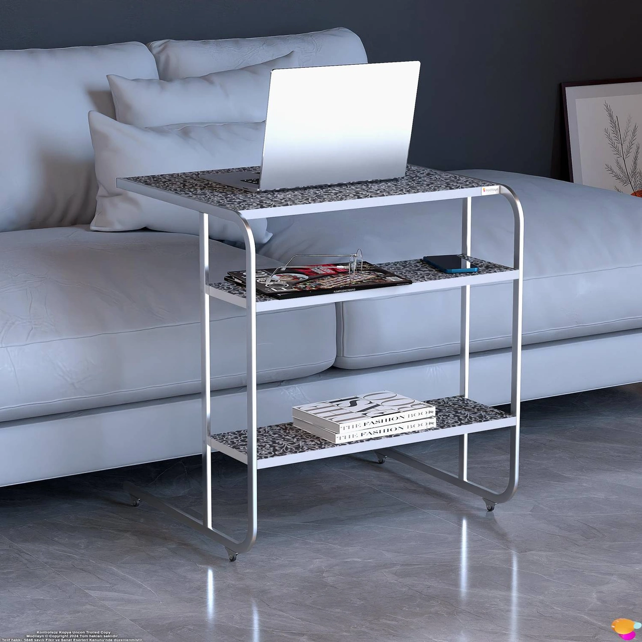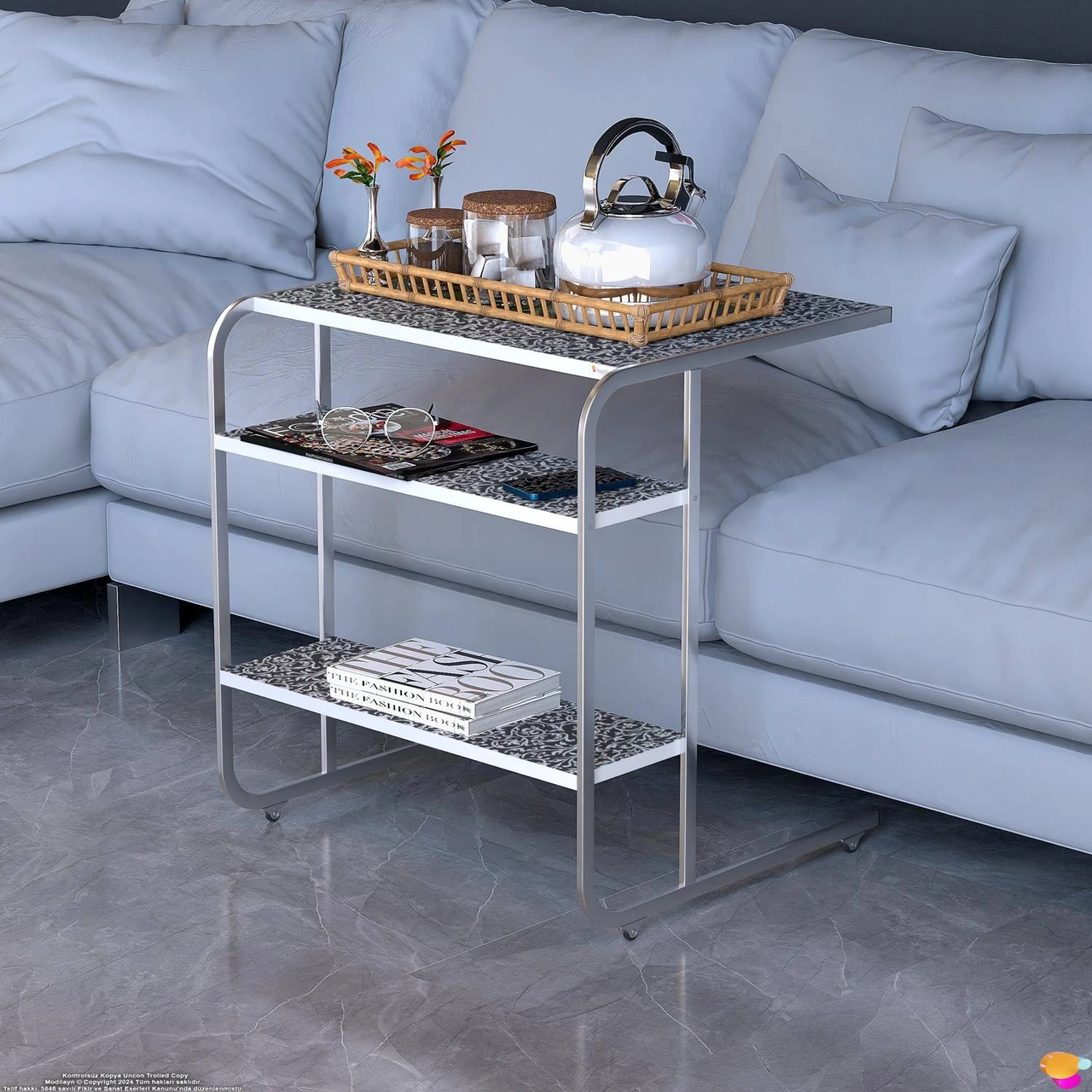 Modilayn C Yan Sehpa Geniş Boy Tekerlekli Çalışma, Atıştırmalık, Yemek, Laptop Sehpası Siyah Desenli Siyah