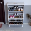 Modilayn Varbi Kapı Önü 52 X 119 X 25, 5 Cm Lik 3 Düşer Kapak 6 Göz Raf Bölmeli Ayakkabılık Beyaz - Meşe