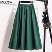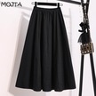 Mojta Kadın Giyim Yüksek Bel Bahar Sonbahar Artı Boyutu Ince A-line Etek Gevşek Rahat Orta Uzunlukta Etek Siyah