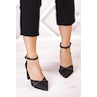 Molly Siyah Saten Taşlı Fileli Kalın Topuklu Ayakkabı