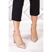 Molly Ten Saten Taşlı Fileli Kalın Topuklu Ayakkabı