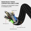 Mavi ios Uyumlu, Type-c Ve Mikro Usb İçin Ekstra Uzun 10ft Naylon Örgülü Usb Şarj Kablosu, Dayanıklı Ve Hızlı Şarj 1m Type-c