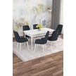 Mona Beyaz 80x132 Açılabilir Mdf Masa Yemek Odası Takımı, Mutfak Takımı 6 Adet Sandalye Beyaz Masa - 6 Antrasit - Beyaz Ayak