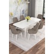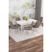 Mona Beyaz 80x132 Açılabilir Mdf Masa Yemek Odası Takımı, Mutfak Takımı 6 Adet Sandalye Beyaz Masa - 6 Cappuccino - Beyaz Ayak
