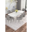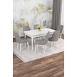 Mona Beyaz 80x132 Açılabilir Mdf Masa Yemek Odası Takımı, Mutfak Takımı 6 Adet Sandalye Beyaz Masa - 6 Gri - Beyaz Ayak