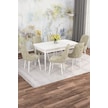 Mona Beyaz 80x132 Açılabilir Mdf Masa Yemek Odası Takımı, Mutfak Takımı 6 Adet Sandalye Beyaz Masa - 6 Krem - Beyaz Ayak