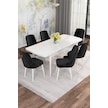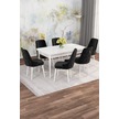 Mona Beyaz 80x132 Açılabilir Mdf Masa Yemek Odası Takımı, Mutfak Takımı 6 Adet Sandalye Beyaz Masa - 6 Siyah - Beyaz Ayak