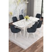 Mona Beyaz Mermer 80x132 Açılabilir Mdf Masa Yemek Odası Takımı, Mutfak Takımı 6 Adet Sandalye Beyaz Mermer - 6 Antrasit - Beyaz Ayak