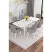 Mona Beyaz Mermer 80x132 Açılabilir Mdf Masa Yemek Odası Takımı, Mutfak Takımı 6 Adet Sandalye Beyaz Mermer - 6 Gri - Beyaz Ayak