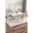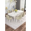 Mona Beyaz Mermer 80x132 Açılabilir Mdf Masa Yemek Odası Takımı, Mutfak Takımı 6 Adet Sandalye Beyaz Mermer - 6 Krem - Beyaz Ayak