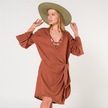 Mona Kadın Kruvaze Pul Baskılı Plaj Elbisesi Tarçın Turuncu