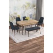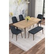 Mona Meşe 80x132 Açılabilir Mdf Masa Yemek Odası Takımı, Mutfak Takımı 4 Sandalye, 1 Bench Meşe Masa - 4+1 Antrasit - Ceviz Ayak