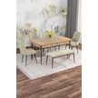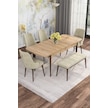 Mona Meşe 80x132 Açılabilir Mdf Masa Yemek Odası Takımı, Mutfak Takımı 4 Sandalye, 1 Bench Meşe Masa - 4+1 Krem - Ceviz Ayak