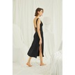Monamise 18461 Kadın Siyah Kalın Askılı Göğüs Ve Sırt Dekolteli Dantelli Yırtmaçlı Gecelik -siyah Siyah