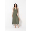 Monamise 18485 Kadın Kalın Askılı Göğüs Ve Sırt Dekoteli Brode Dantelli Yırtmaçlı Gecelik-haki Haki