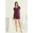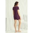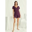 Monamise 18499 Kadın V Yaka Kısa Kollu Şortlu Pijama Takımı-bordo Bordo