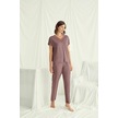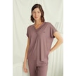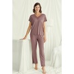 Monamise 18512 Kadın V Yaka Kısa Kollu Pijama Takımı-kahve Kahve