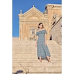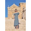 Eteği Volanlı Uzun Elbise Kırık Beyaz