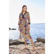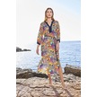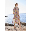 Monamise Kadın Çiçek Desenli Yırtmaçlı Truvakar Kollu V Yaka Elbise 25055 Lacivert