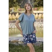 Monamise Kadın Çiçek Ve Yaprak Desenli Dantelli Şort Takımı 24102-yeşil Yeşil