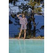 Aztek Motifli Şerit Korse Crop Cepli Lastikli Palazzo Pantolon Modern Etnik Yazlık Boho Keten Takım Beyaz