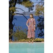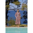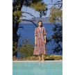 Monamise Kadın Etnik Desenli Truvakar Kollu Önü Düğmeli V Yaka Elbise 25031 Saks