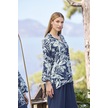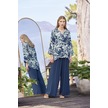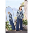 Monamise Kadın Yaprak Desenli Uzun Kollu Gömlek Yaka Alt Üst Takım 25016 Lacivert
